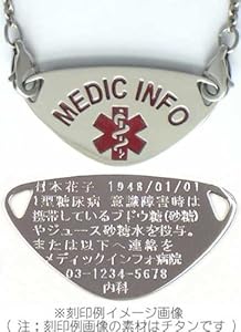 MEDIC INFOとは、世界標準の救急医療のシンボルマーク「Star of Life」を配し、裏面に既往症、薬、アレルギーおよび個人情報等の大切な情報を刻印する事ができるIDプレートアクセサリーです。